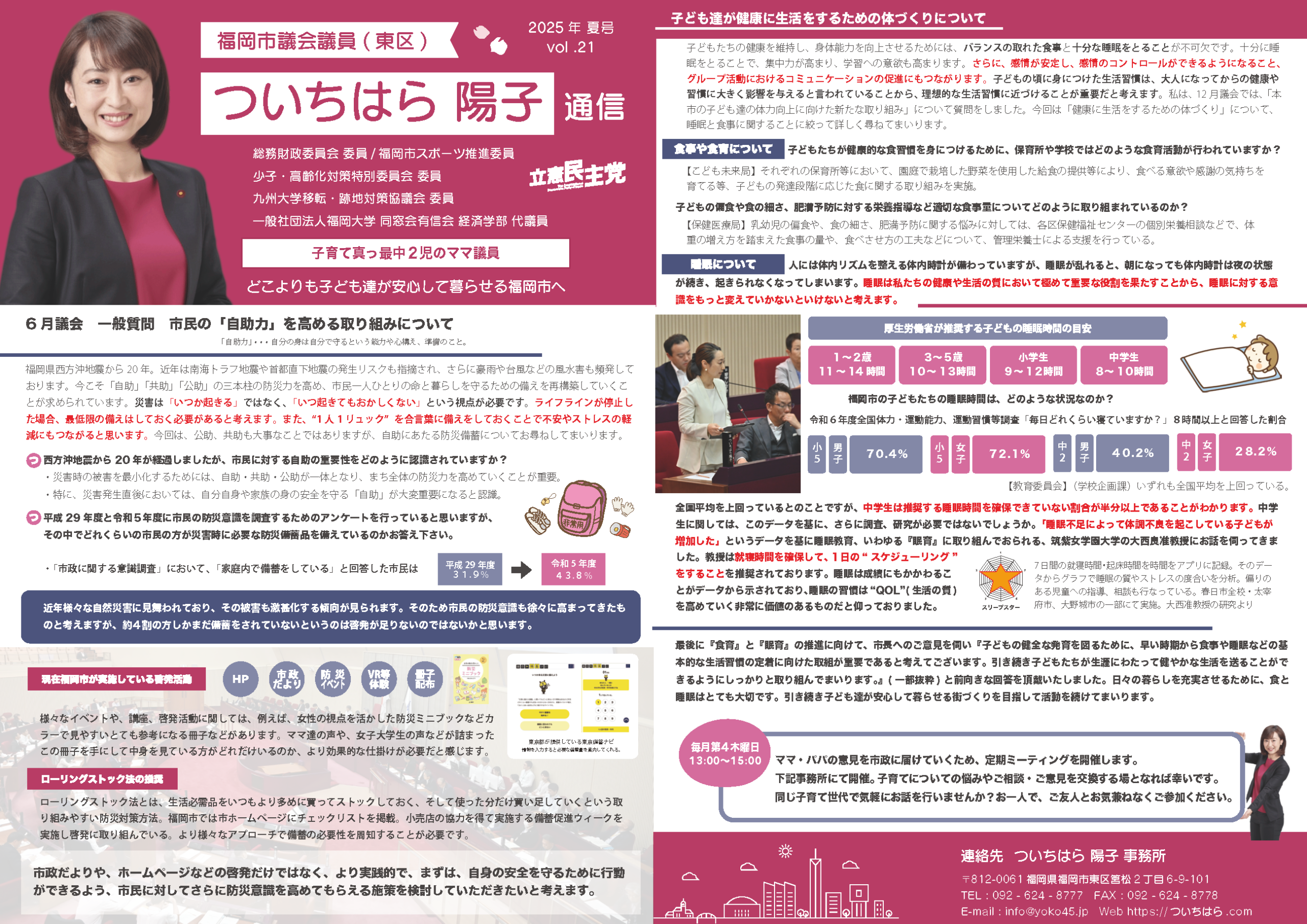 ついちはら陽子 通信(2025年新夏号 vol.21)を発行しました。